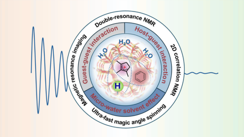 沸石分子筛是石油化工生产中应用最为广泛的一类催化材料。其纳米孔道内的限域效应使得主-客体、客体-客体以及环境介质(如水)之间微弱的分子间相互作用被显著放大,从而深刻影响反应路径、选择性和催化剂寿命。然而,这些相互作用在实验上难以捕捉和量化,其具体作用机制与调控规律一直是该领域的重大挑战。近年来,该研究团队围绕上述挑战,在高分辨、高灵敏固体NMR方法学领域取得了一系列重要突破并成功将其应用于沸石催化体系的研究中。