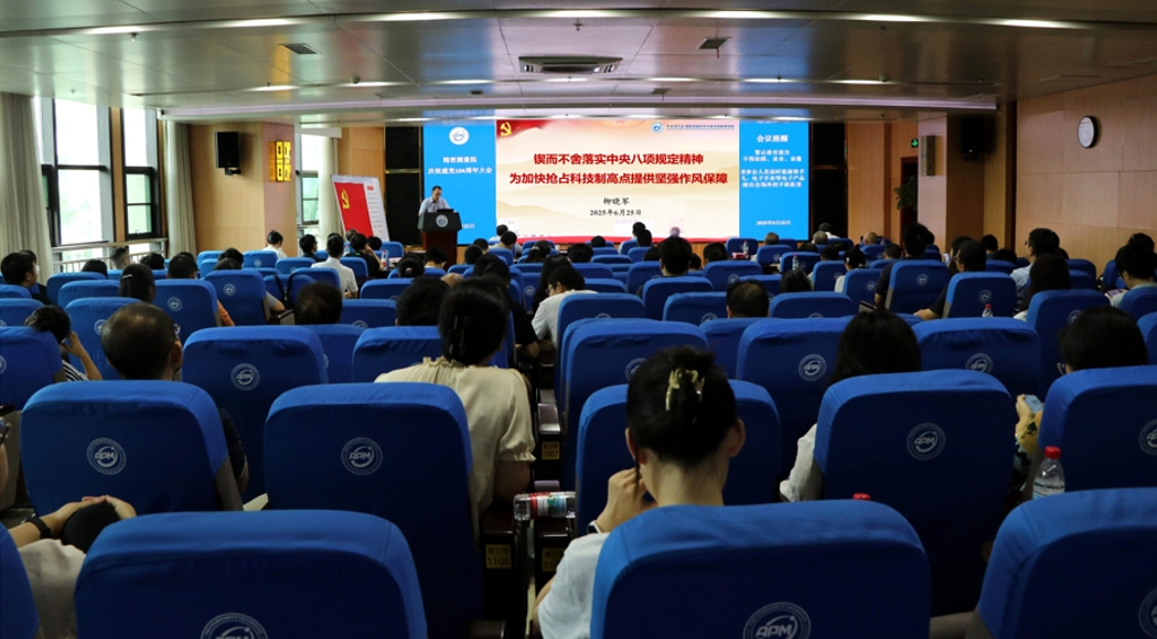 6月25日,精密测量院举行庆祝建党104周年大会暨学习教育专题党课和警示教育报告会。党委书记柳晓军、纪委书记洪成浩作专题报告,副院长江利明主持会议。